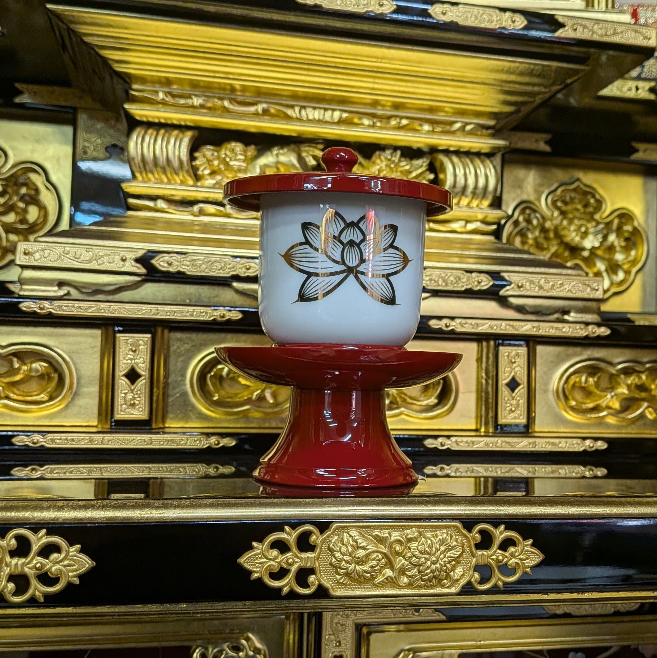やさしい丸みと上品な金彩が、仏前に穏やかな彩りを添えます。