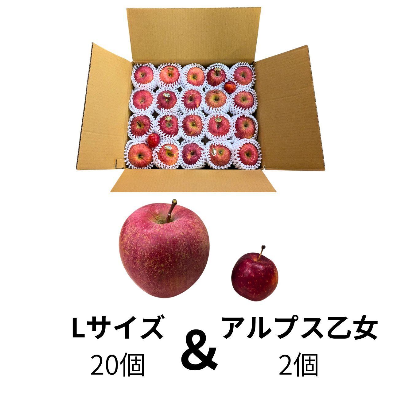 【日時指定不可】山形県産 サンふじ りんご 5kg Lサイズ(18~20玉) 送料別 アルプス乙女 2個付き|蜜たっぷりの濃厚な甘さ|11月下旬〜12月中旬発送