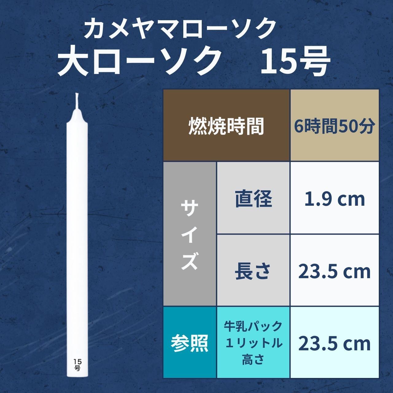 約6時間50分燃焼の大ローソク15号。長時間灯し続けたい場面に最適です。