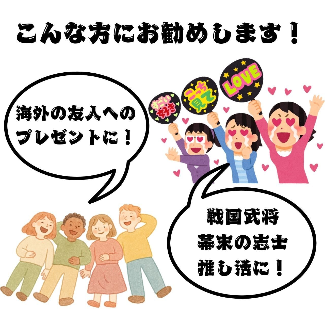 武将名は3種類の記載方法から選べ、さらに家紋を指定すれば、あなただけのオリジナルストラップが完成します。こだわりのアイテムを手に入れて、周りと差をつけましょう!