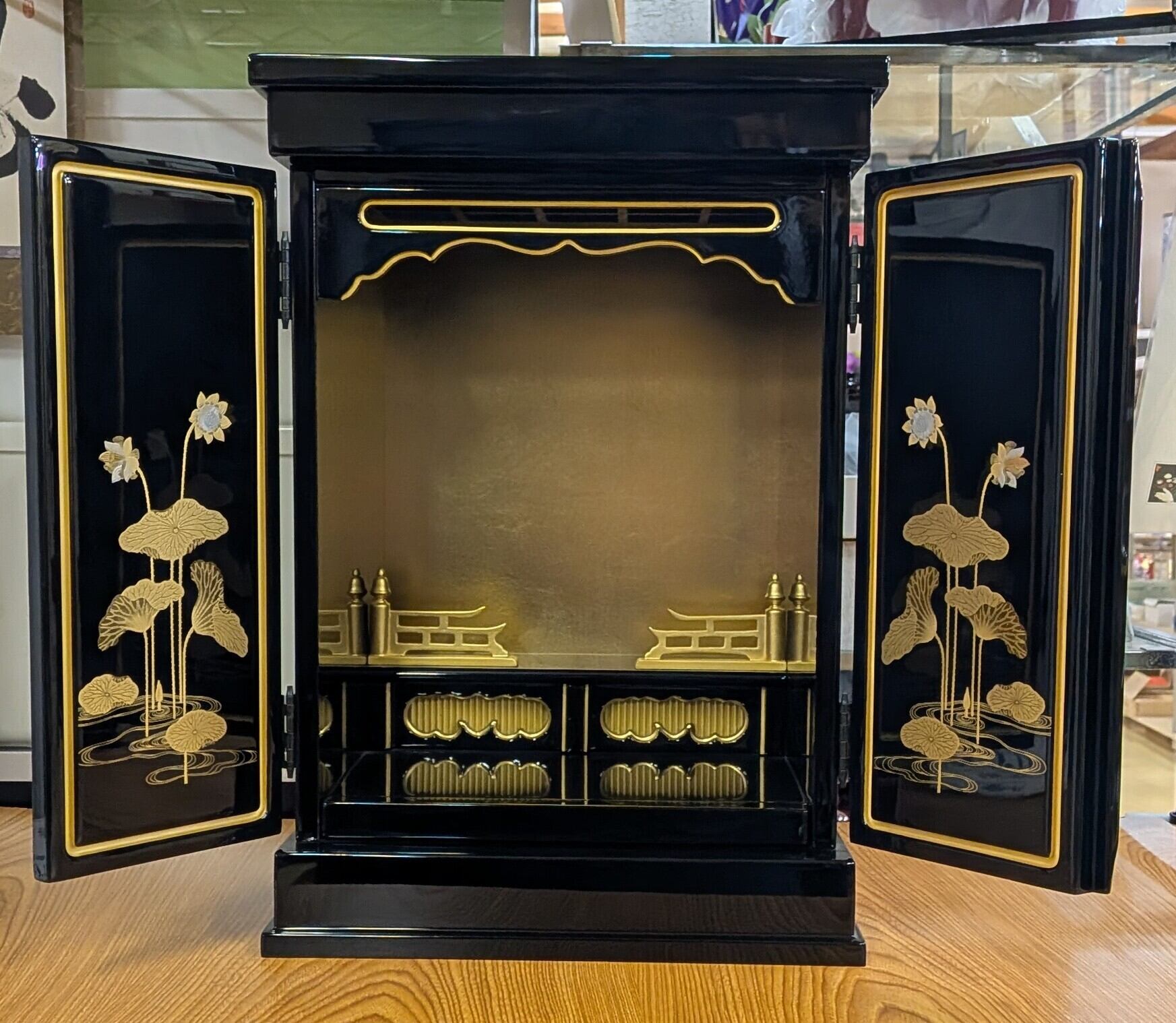 上置仏壇 塗蒔絵 14号 自社配送 高さ 43cm 幅 31cm 奥行 29cm 仏具別