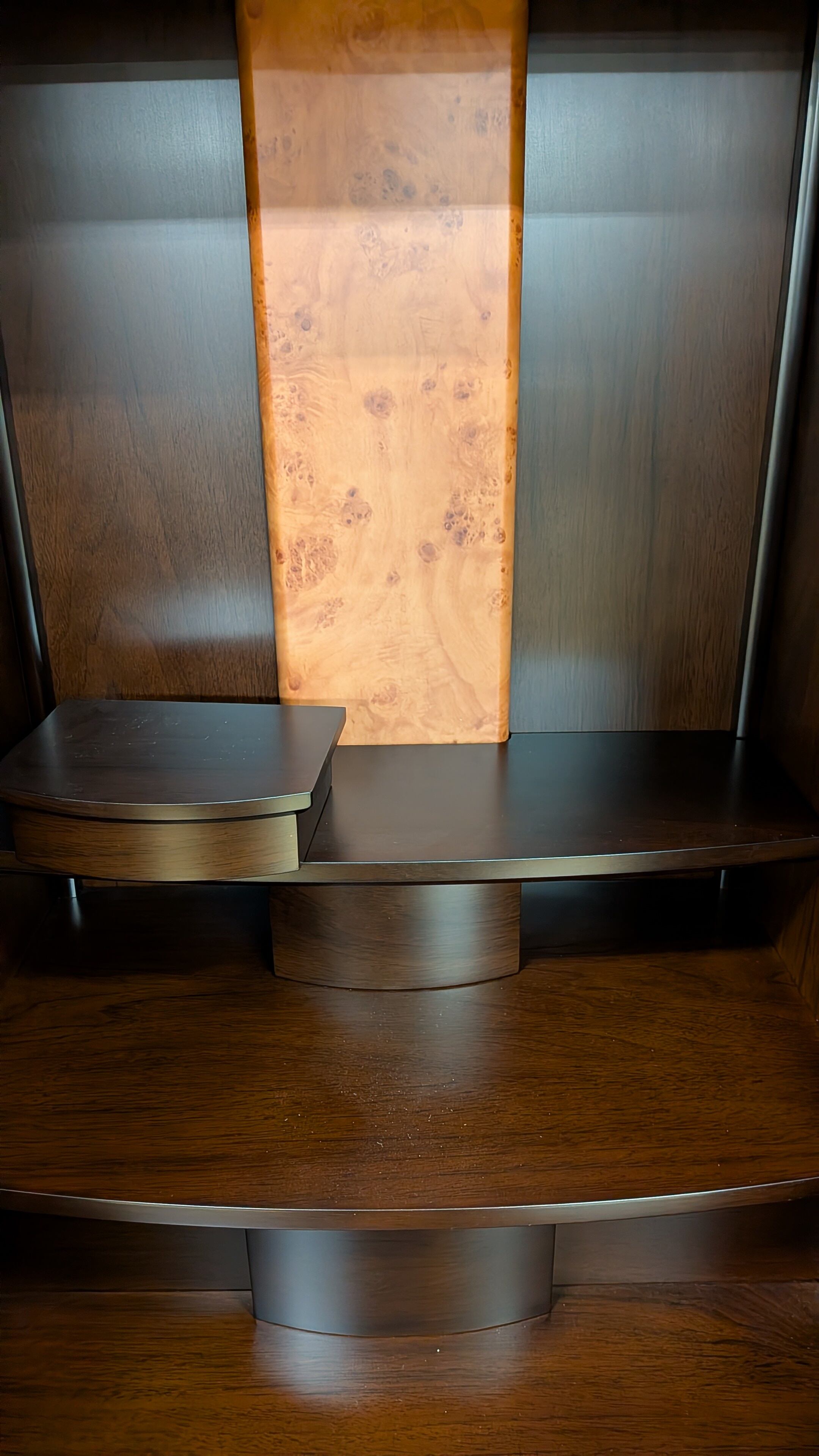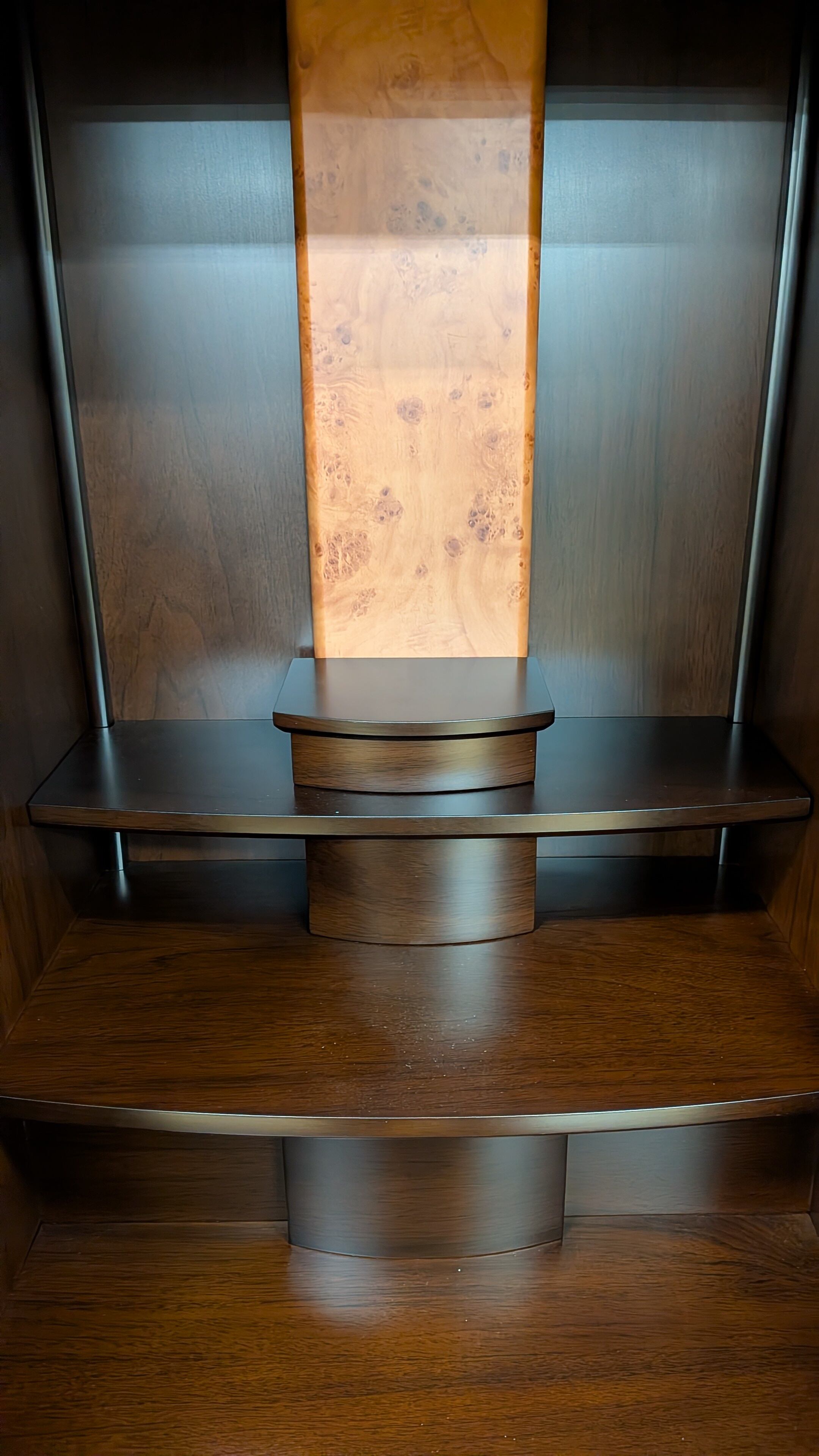 このお仏壇は、桜の螺鈿細工が特徴で、洗練されたウォール調デザインが魅力です。現代的なスタイルでありながら、伝統的な美しさを併せ持ち、お部屋に心和む雰囲気をもたらします。53cmの仏像を収めることができ、安心してお祈りに集中できる空間を演出します。