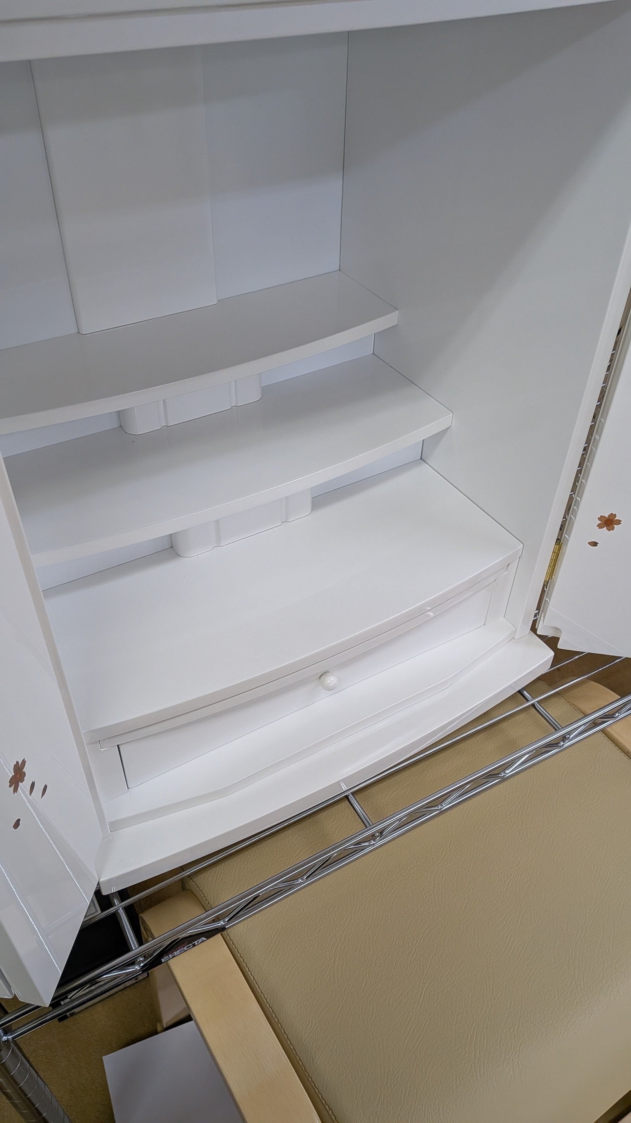 【スペック】高さ:54cm/幅:40cm/奥行:35cm/特徴:ホワイト鏡面仕上げに桜の花びら、仏具別