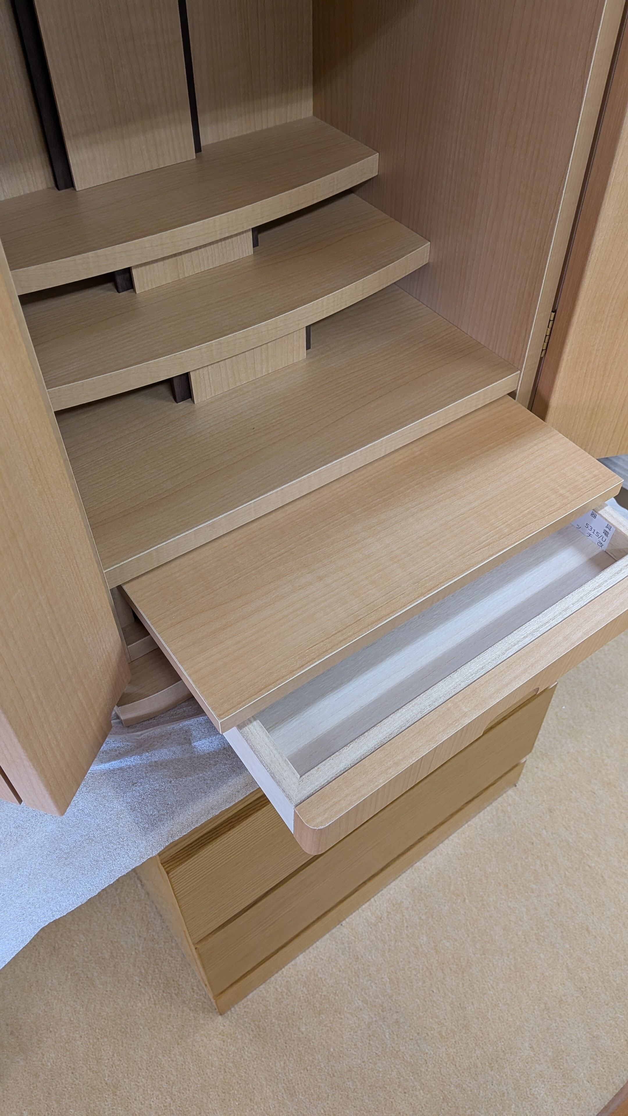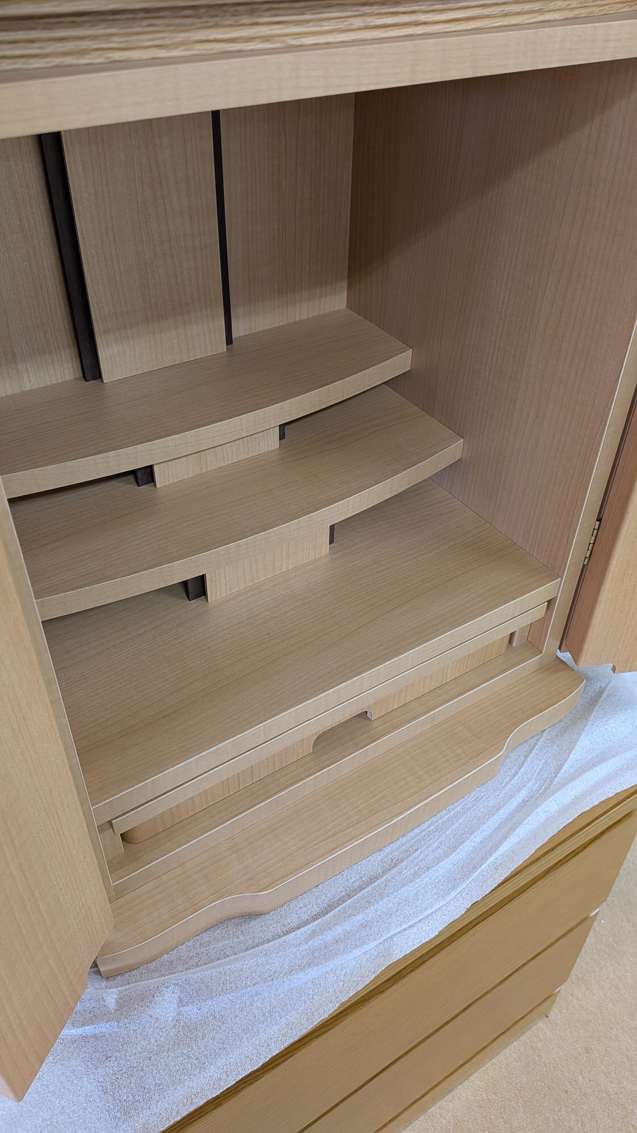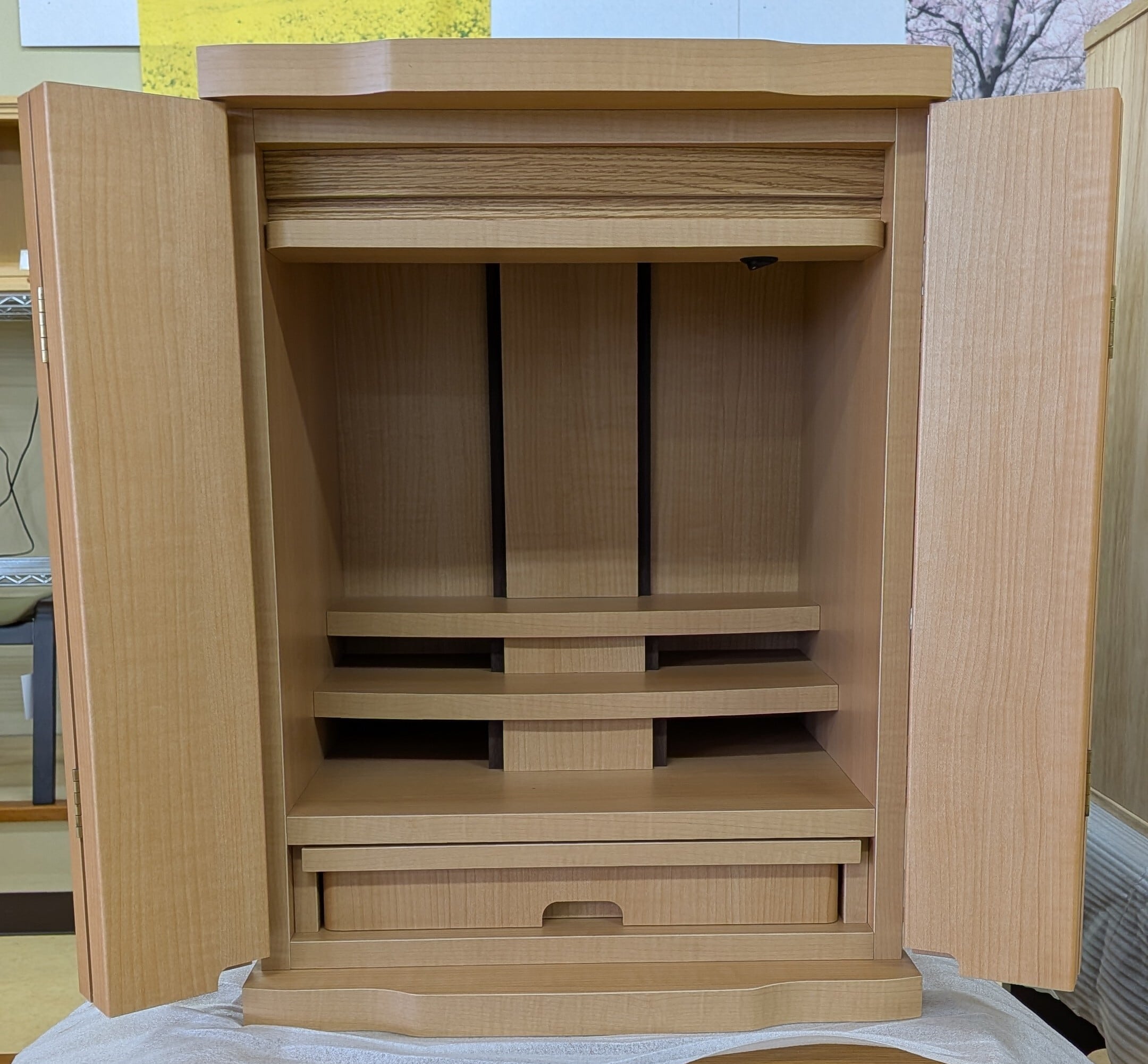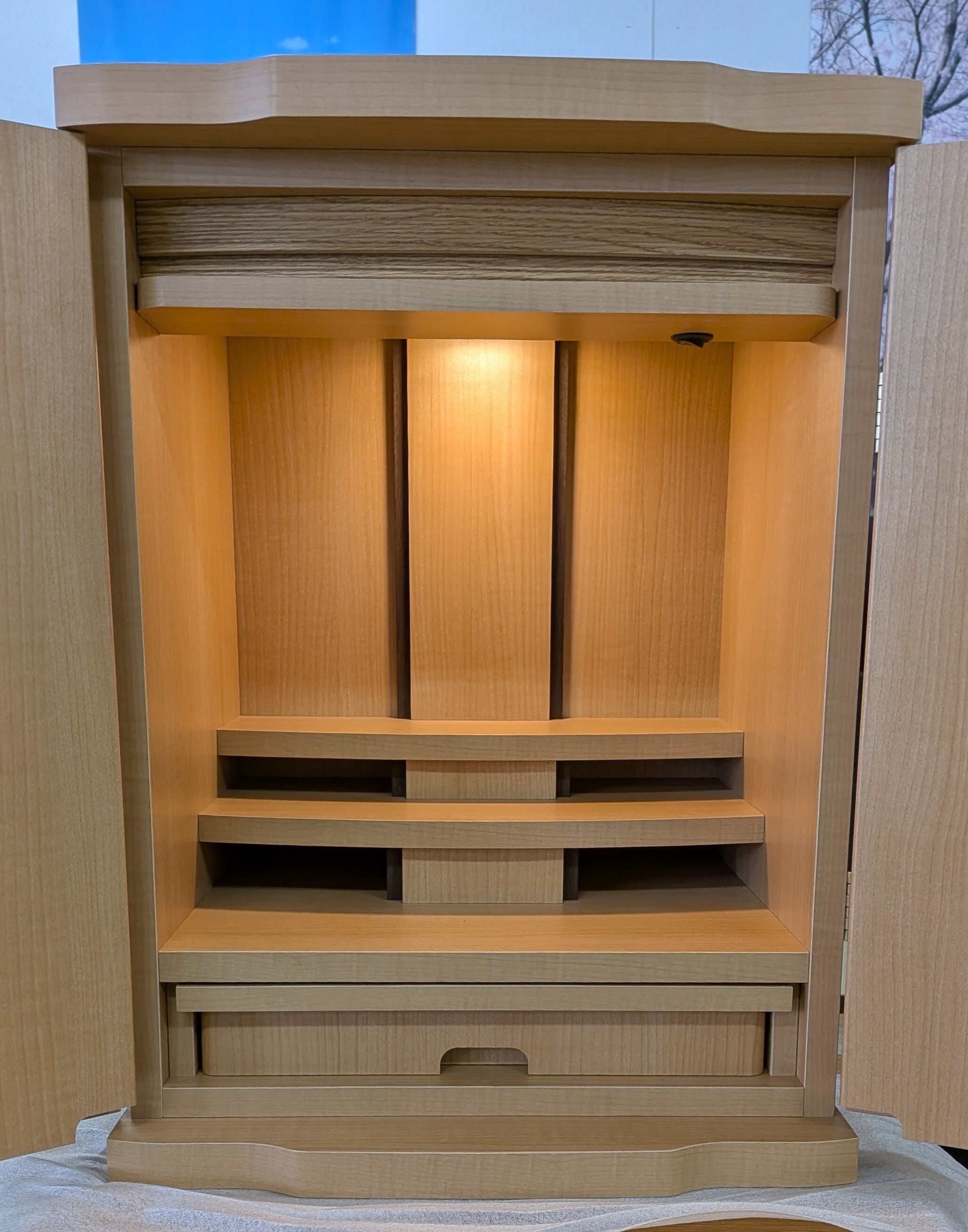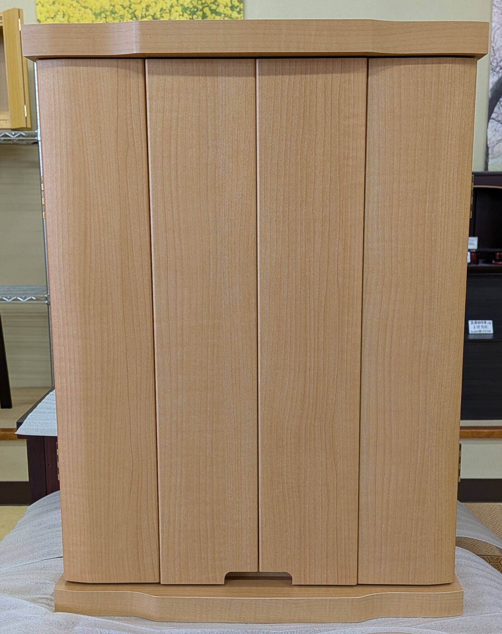 【スペック】高さ:54cm/幅:40cm/奥行:34cm/特徴:ナチュラルな木目、シンプルな国産デザイン、仏具別