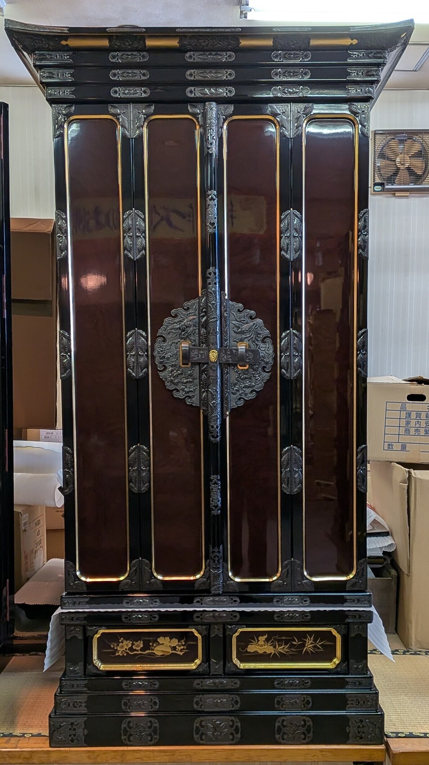 【スペック】高さ:178cm/幅:98cm/奥行:70cm/特徴:大型の本金仏壇、仏具付き