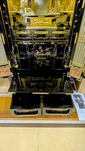 こちらの金仏壇には、仏具が一式揃っていますので、到着後すぐにお使いいただけます。手間を掛けずに、大切なお祈りの時間をお楽しみいただけるので、心のこもったひとときを迎える準備が整っています。