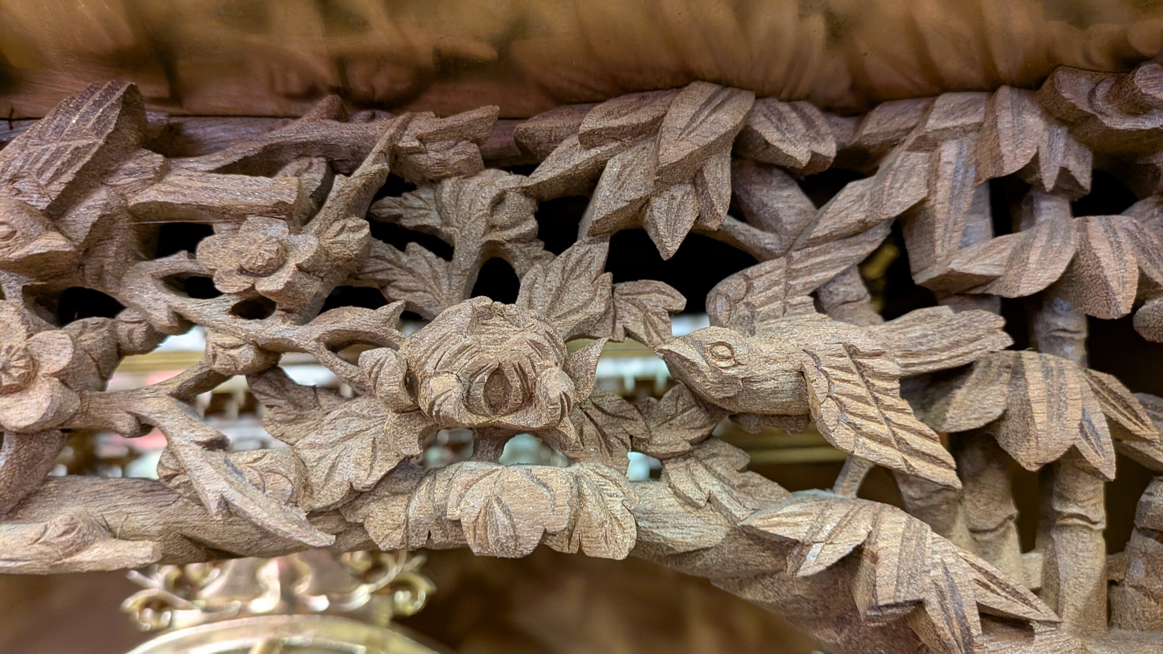 この金仏壇は、白木彫りと美しい蒔絵が見事に調和しており、洗練された上品さを漂わせます。伝統的な技巧が施されており、心を込めたお祈りの時間をより特別なものに演出します。コンパクトなサイズ感ながら、存在感は抜群です。