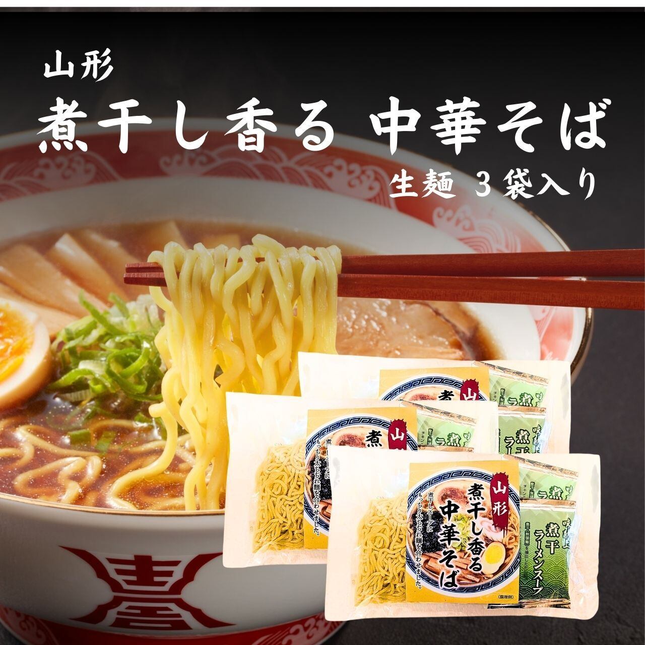 山形 中華そば 生麺 3袋入り 煮干し香る 懐かしい 送料無料 ラーメン