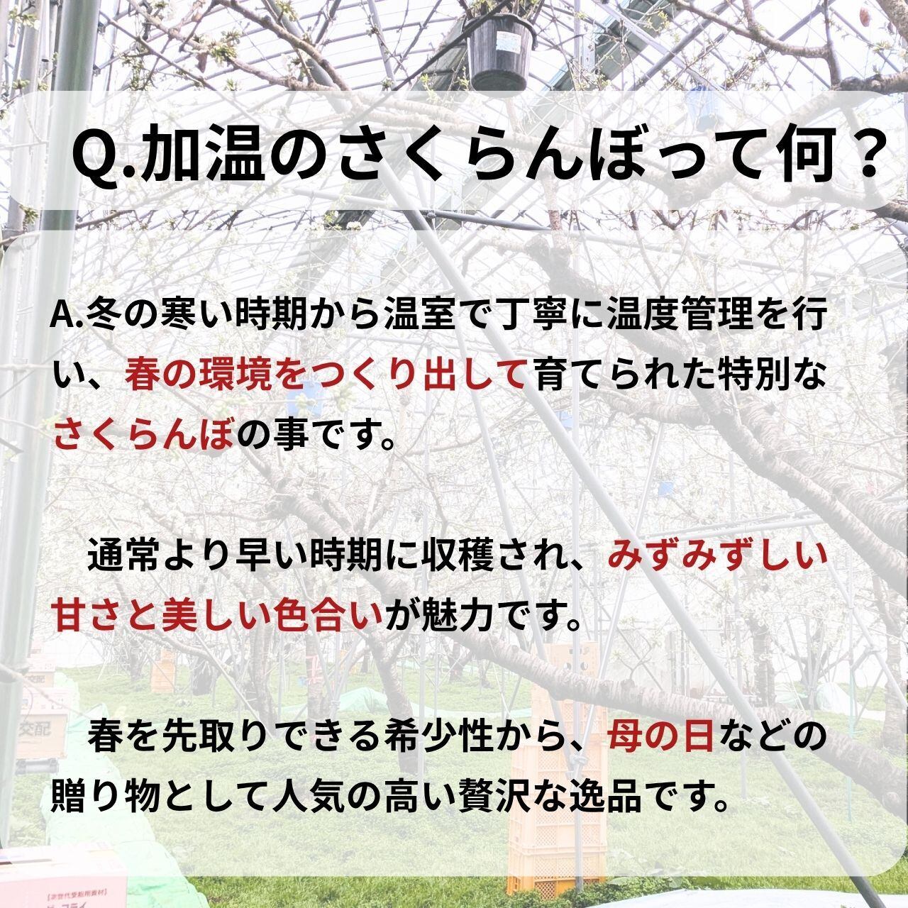 山形県東根市の自然が育んだ、極上の「加温 さくらんぼ ダイヤパック」です。温室で愛情込めて育てられたこのさくらんぼは、甘みと酸味のハーモニーが心を癒します。2個セットでお届けし、贈り物にも最適な化粧箱入りです。母の日や特別な日のデザートにぴったりな一品。クール便での配送により、鮮度も保たれています。自宅での贅沢なフルーツ体験をぜひお楽しみください。
