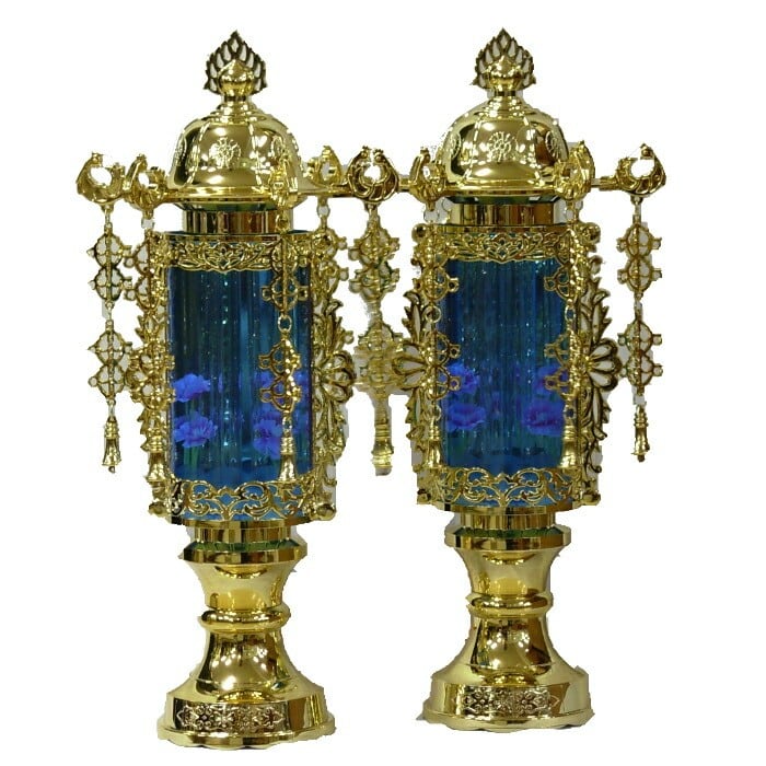 バブル灯7号 ブルー・ゴールド一対【盆提灯】【泡】【送料無料】