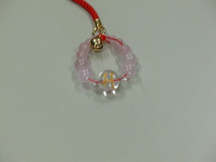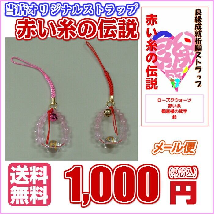 良縁成就祈願ストラップ「赤い糸の伝説」【当店オリジナルストラップ】【ローズクォーツ】【赤い糸】【鈴】【観音様の梵字】【送料無料】